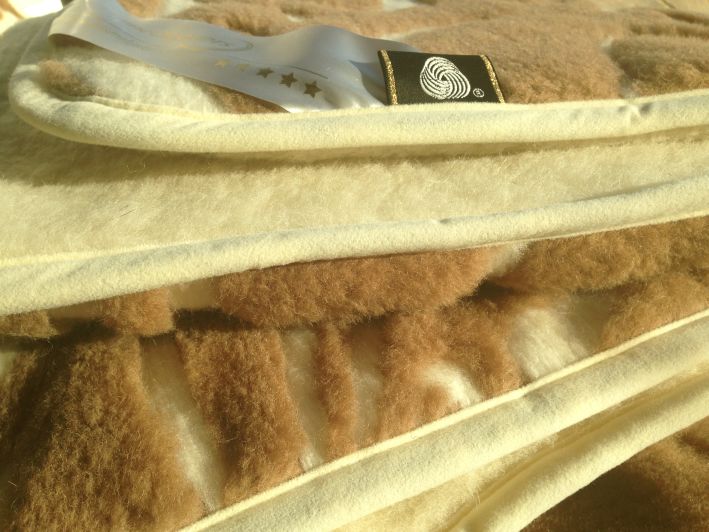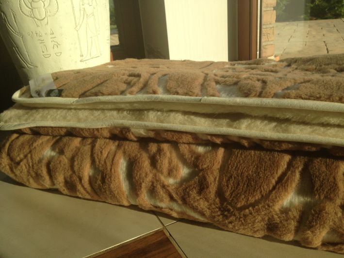 – dwustronna, ekskluzywna kołdra wełniana, wykonana z dwóch warstw wełny camel wielbłądziej, a jej gramatura to 690 g/m2